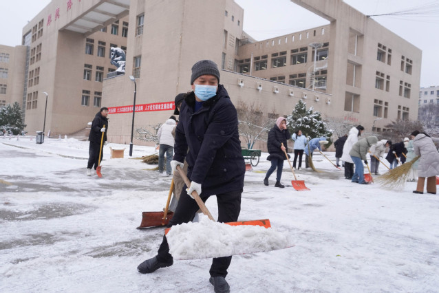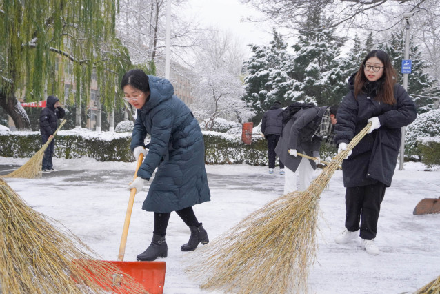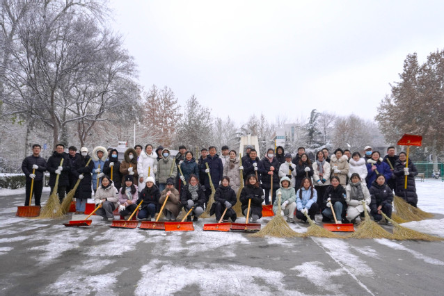 降雪给校园带来美景的同时也给师生的出行带来诸多不便,为尽快扫除积雪,保障师生出行安全和教学工作正常运行,12月15日,十大正规买足球网站师生齐心协力,迅速投入到扫雪工作中。