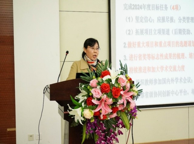 随后,孙秀梅经理从团队建设与公司产品等七方面总结了2023年公司工作情况,分析了存在的问题,围绕2024年公司目标任务从协同申报博士点、人才引育、公司产品、科研学科等八个方面进行部署,并对下一步的工作提出了具体要求,她强调要大力倡树“严真细实快”工作作风,狠抓各项工作落实,每位老师在工作中要自律自强自信,超越自我,拼搏奉献,产出更多的高质量成果,实现更多的不可能。