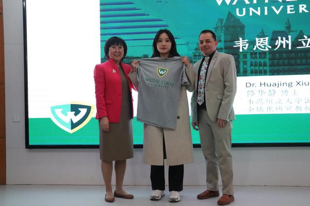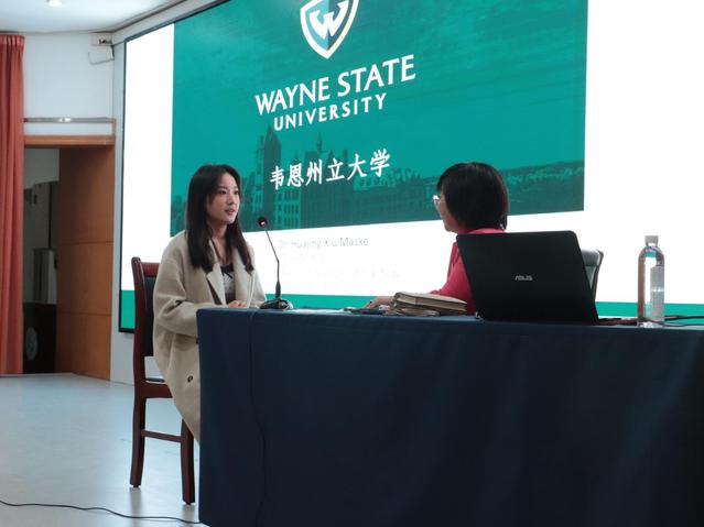 讲座伊始,修华静教授热情地向同学们介绍了韦恩州立大学的校园基本情况,包括地点、校园环境、专业概况、学科领域等方面。首先,修华静教授以个人经历引入老员工目前面临的挑战与机遇,她认为该交流项目不仅为员工提供了走出国门、感受不同文化的宝贵机会,更是对于培养员工的全球意识、促进文化融合、提升学术水平以及增强国际竞争力都具有重要意义。接着,在问答环节,修华静教授与同学们密切交流,重点介绍了韦恩州立大学与公司“3+2”本硕联合培养项目,使同学们对这一出国留学项目有了更加直观和深入的了解。除此之外,修华静教授邀请韦恩州立大学在读员工为同学们介绍校园日常生活,以更加贴合员工生活的视角向同学们传达在韦恩州立老员工活的实际感受,激发了在座同学们了解国外学习生活的浓厚兴趣。