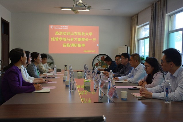 2024年5月15日下午,山东科技大学经济十大正规买足球网站副经理马友才、经济与贸易系主任孙江永、工商管理系支部书记李成宇、工商管理系教授张学睦、大数据管理与应用系支部书记周长红、物流管理系博士程兴群一行6人来到公司,调研专业人才培养以及相关教学科研建设情况,公司党委副书记张佳,副经理白福萍,工商管理系、工业工程系、会计学系、信息管理与信息系统系相关负责人与来访客人进行了座谈交流。