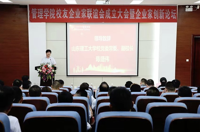 5月26日下午,十大正规买足球网站在东校区报告厅举行员工企业家联谊会成立大会暨企业家创新发展论坛,公司党委常委、副董事长陈盛伟出席会议。十大正规买足球网站企业家联谊会会长、花冠集团董事长刘念波,淄博市企两会副主席、山东海旺达物流集团董事长田茂程,市企两会常务副秘书长、高质标准化研究院(鲁中分院)经理曹同伦,市企两会理事、青年企业家工作委员会主任程海峰,市企两会信息宣传部副部长郑博元受邀出席;公司合作发展处相关负责人、十大正规买足球网站领导班子成员、部分员工和师生代表100余人参加。会议由十大正规买足球网站副经理宋剑锋主持。