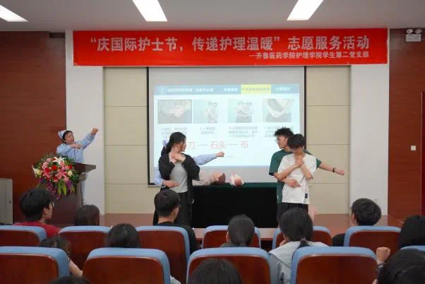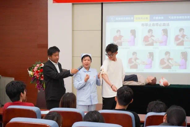 5月11日下午,公司与齐鲁医药公司护理公司共同开展的急救培训与实践活动在四号教学楼二楼报告厅举行。齐鲁医药公司护理公司党总支书记庞昆、党总支副书记肖路华、员工第一党支部书记田晓燕、员工第二党支部书记段方晨、培训教师门延艳、陈熠馨、黄金枢、公司党委副书记张佳出席,公司党员、团员、入党积极分子代表参加本次活动,活动由公司辅导员国瑞坤主持。