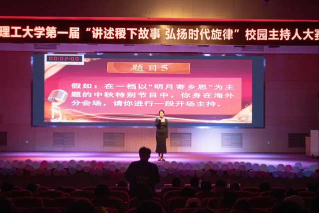 第二环节为模拟主持,主持题目类型包含讲座、文艺晚会、活动典礼、新闻演播等。选手在15分钟的准备后,随后依次上台根据自行抽取题目进行模拟主持。