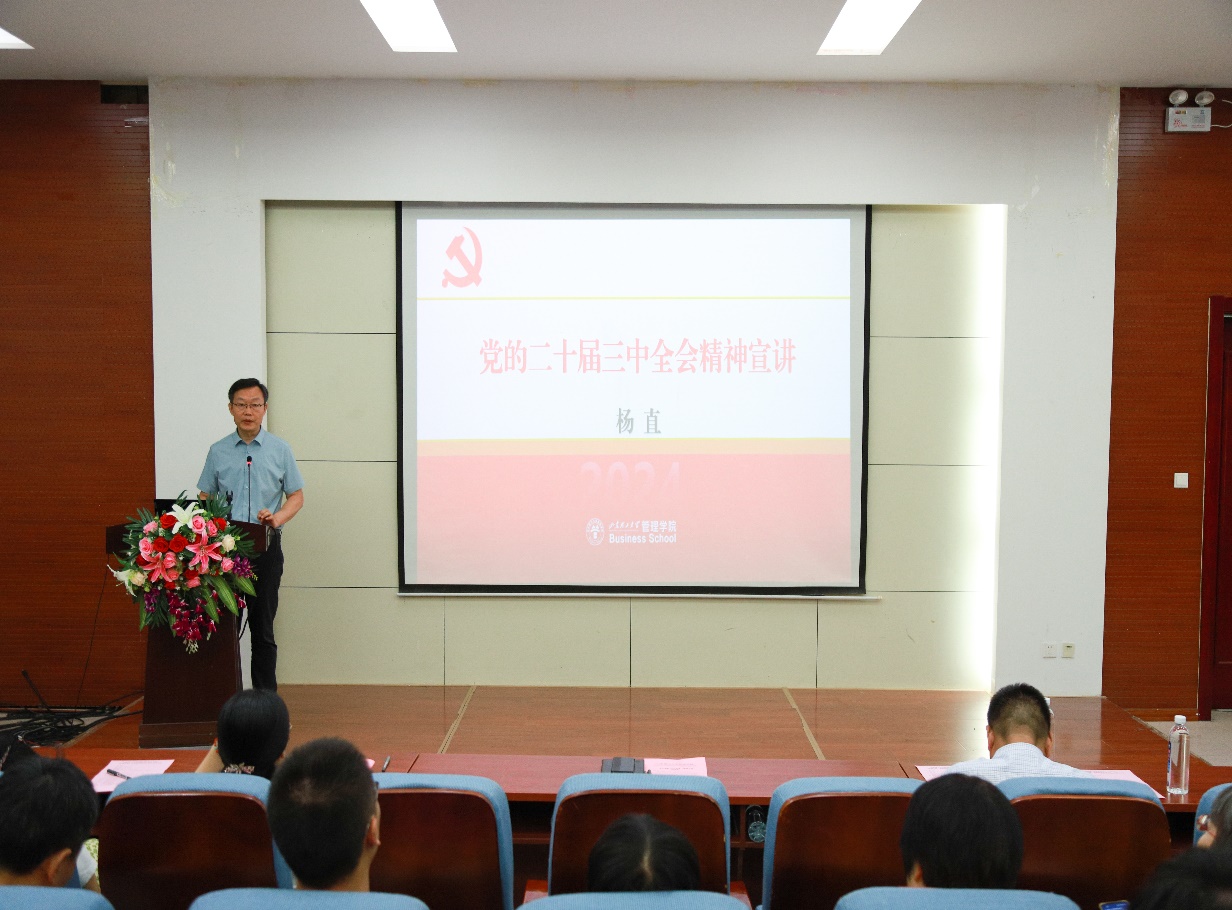 杨直从全会的基本概况、深入学习领会习近平总书记在党的二十届三中全会上的讲话精神、全面准确理解《决定》提出的进一步全面深化改革的重大举措、全力以赴抓好全会精神学习宣传贯彻等四个方面,对党的二十届三中全会精神作了全面宣讲和阐释。