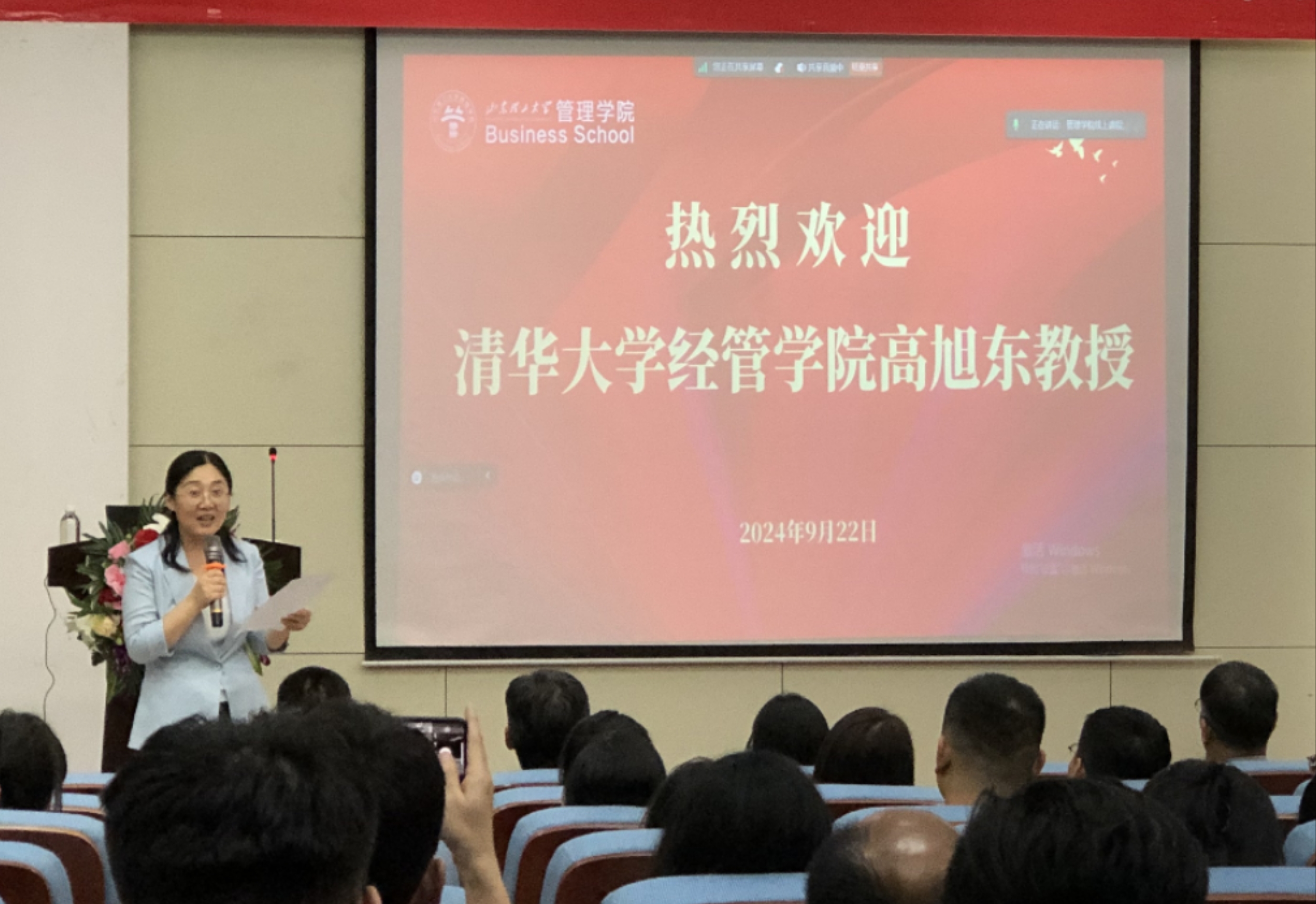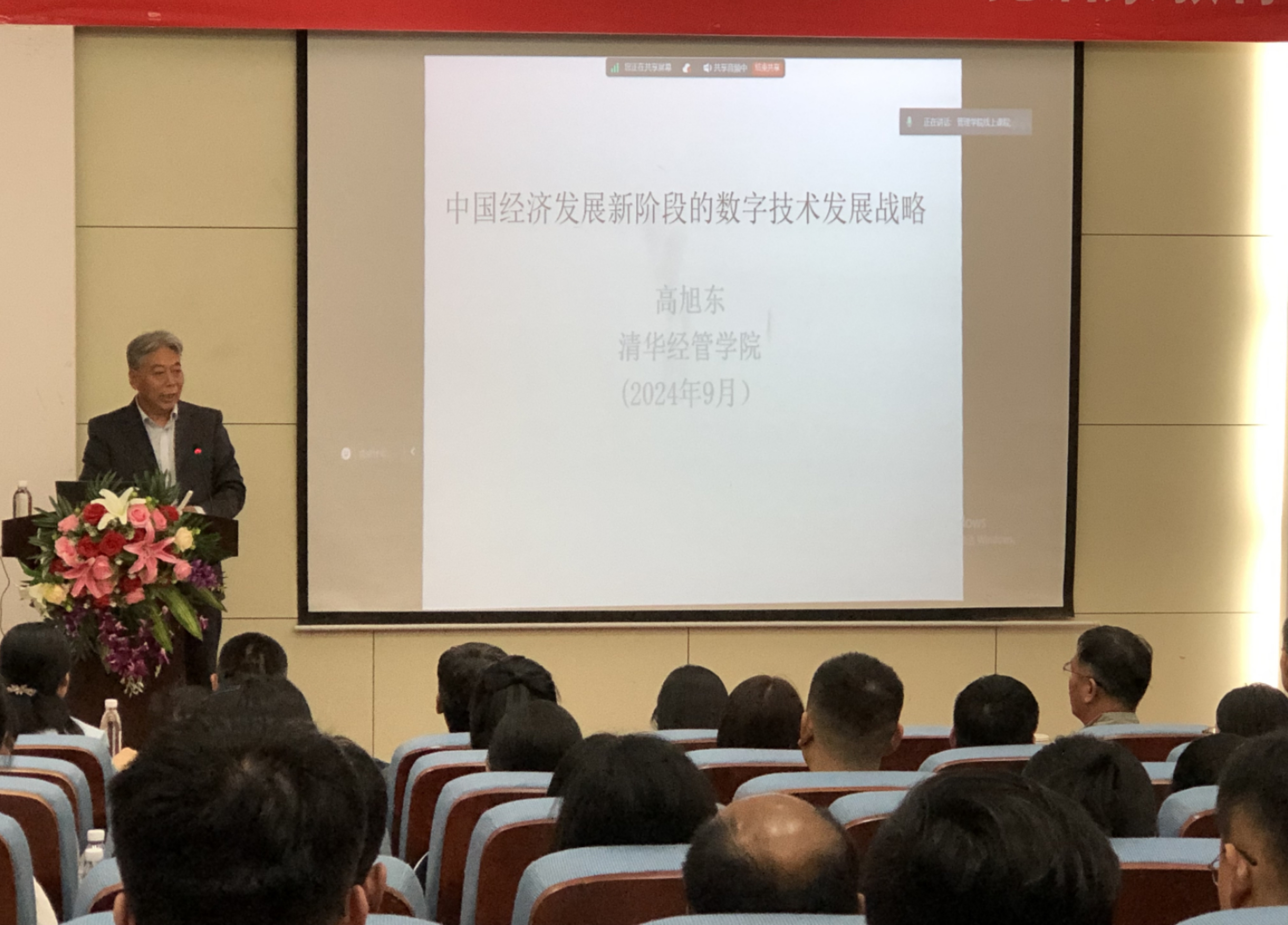 9月22日下午,清华大学经济十大正规买足球网站高旭东教授应邀在东校区4号教学楼二楼报告厅进行了题为“中国经济发展新阶段的数字技术发展战略”的学术报告。管理公司党委书记杨直、经理孙秀梅,以及公司部分研究生导师和研究生参加了此次报告会。本次报告会由经理孙秀梅主持。