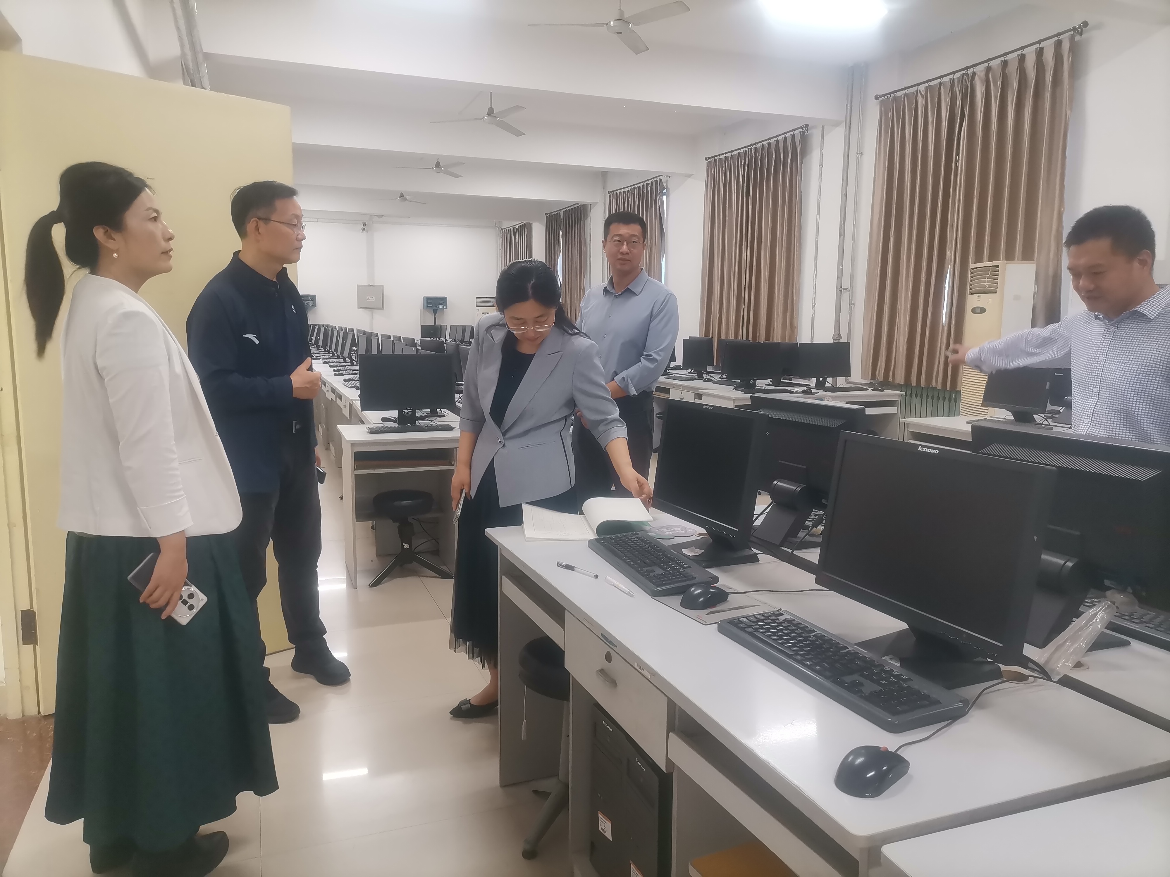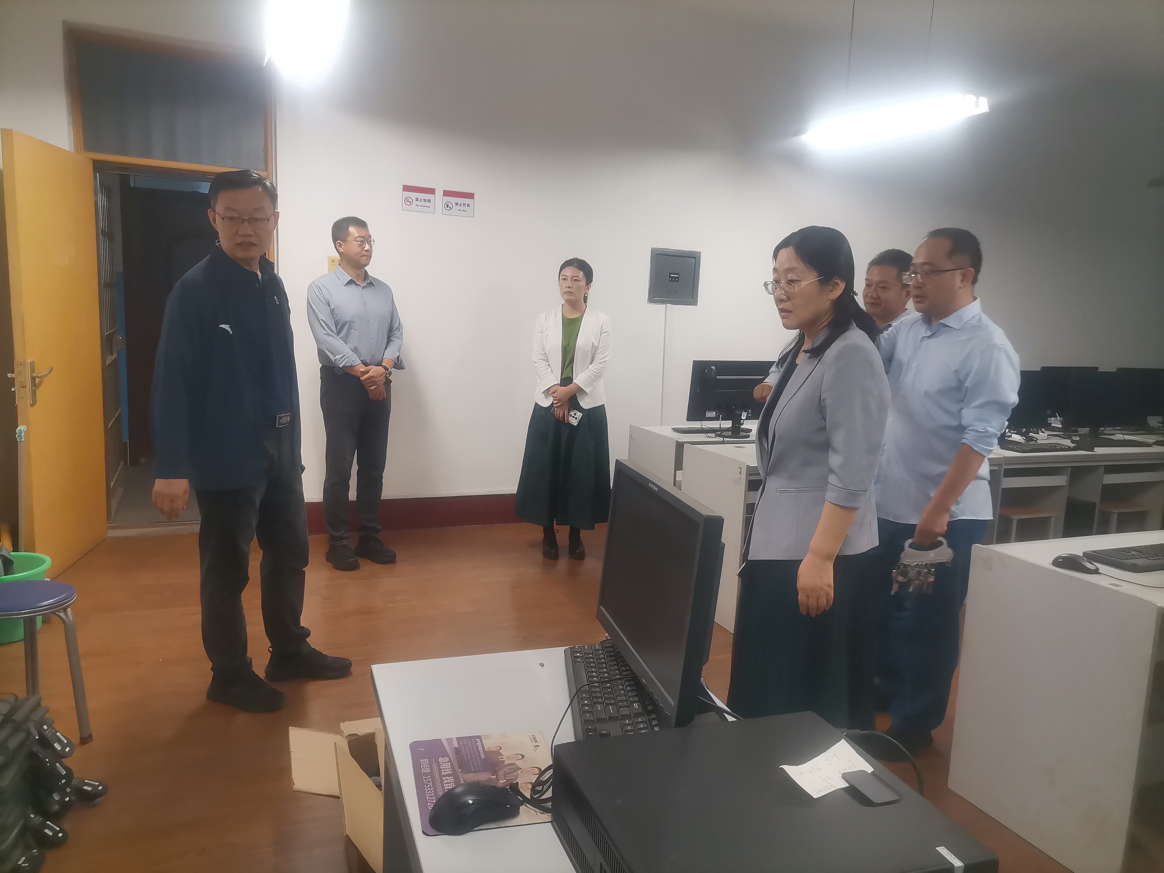 工作小组先后来到行政办公室、工作间、实验室、研究生自习室、图书馆五楼系办公室、会议室等地,开展了一次全面细致的安全大检查。检查人员对各场室的用水用电、消防设施、防火防盗、仪器设备等安全事项做了隐患排查,对空调使用、电线线路、环境卫生等情况进行了安全检查,重点查验了电源开关使用是否规范、电源线是否破损、是否违规使用大功率电器、是否随意堆放易燃物、消防通道是否保持畅通等问题,及时消除各类安全隐患,封闭假期不使用的场所,并提醒相关人员妥善保管个人物品和设备。