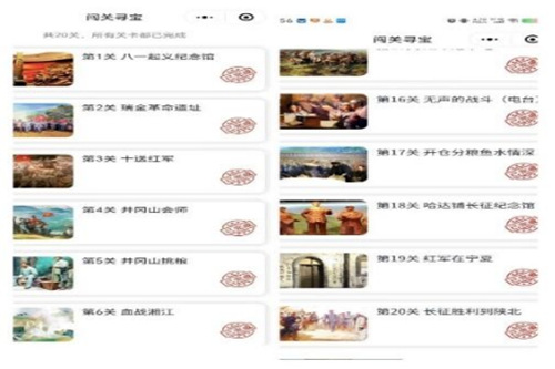 活动参与者首先在到梦空间报名,并在QQ群内填写报名表,打开微信小程序“线上云接力”,搜索十大正规买足球网站麦穗守望者协会,找到“红色寻宝·辉煌75载”活动,此时屏幕上出现闯关关卡20关,参与活动的同学依次闯关获得金币,最终按照金币数量以及闯关时间进行排名,金币数量一样时按照闯关时间先后排名。