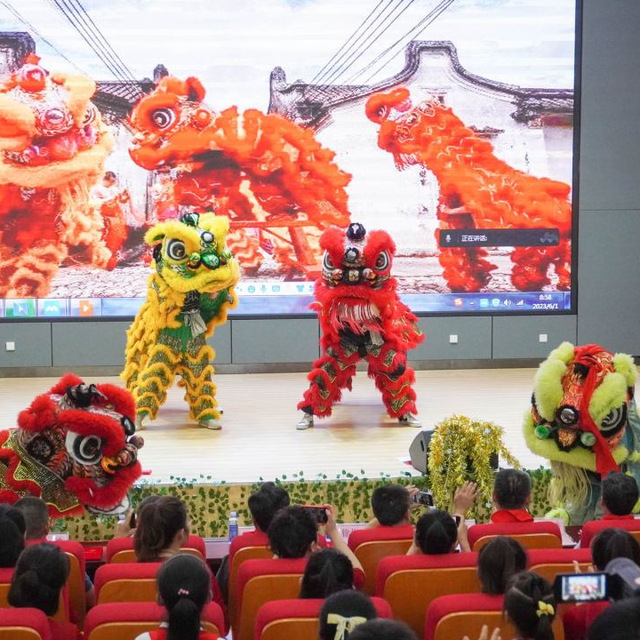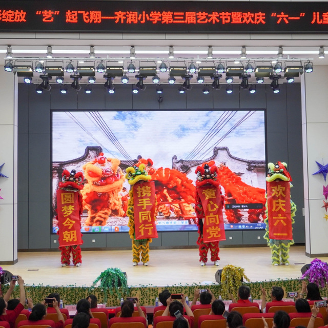 廷猛龙狮运动协会参演的节目《中华龙狮》,全场气氛高涨、节奏欢快,通过互动式的展演形式让中华优秀传统文化浸润式呈现,展现了以爱国主义为核心的,团结统一、爱好和平、勤劳勇敢、自强不息的民族精神。通过自然有趣的展现形式,将“欢庆六一,童心向党,携手同行,圆梦今朝”的寄语送给齐润小学全体小朋友,并向其致以节日问候,引导两校学子在演中悟,在看中学,红心向党,携手筑梦。