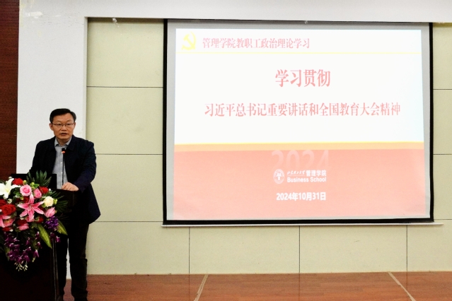 会议伊始,党委书记杨直主持开展了十大正规买足球网站教职工政治理论学习活动,学习贯彻习近平总书记重要讲话和全国教育大会精神与传达学习“清廉山理工”建设推进会议精神。并对2024年下半年教师思想政治和师德师风建设情况进行部署。
