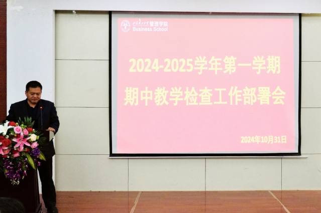 然后,会议进行了期中教学检查工作部署会。副经理胡付领首先带领大家学习了《关于开展2024-2025学年第一学期期中教学检查的通知》公司文件,传达了期中教学检查的要求及标准,并对检查内容及检查日程做了详细安排。胡付领也从专业建设、教学研究、教师发展等方面汇报了近期的教学活动动态。