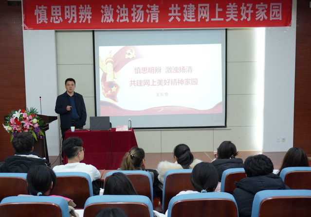 为了更好地应对当前网络安全面对的形势与挑战,提升公司师生网络素养与舆情处置能力,提高网络安全意识。11月29日晚,公司于四教二楼报告厅开展“慎思明辨,激浊扬清,共建网上美好家园”专题培训,由宣传部副部长王长恒老师主讲,青马班全体学员参训。