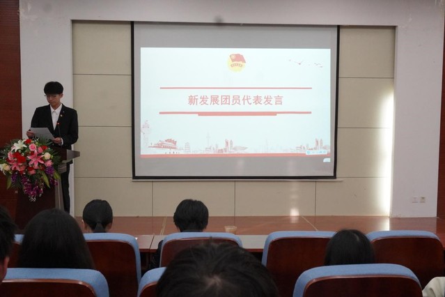 李璐代表院团委向全体新团员表示欢迎和祝贺,并向新团员提出寄语与嘱托。她指出团员身份是政治生命的开始,激励团员勇迎挑战、勤奋学习,要牢记使命担当,以团员标准严格要求自己,更好地发挥共青团员的模范带头作用。