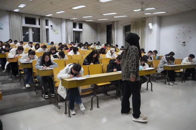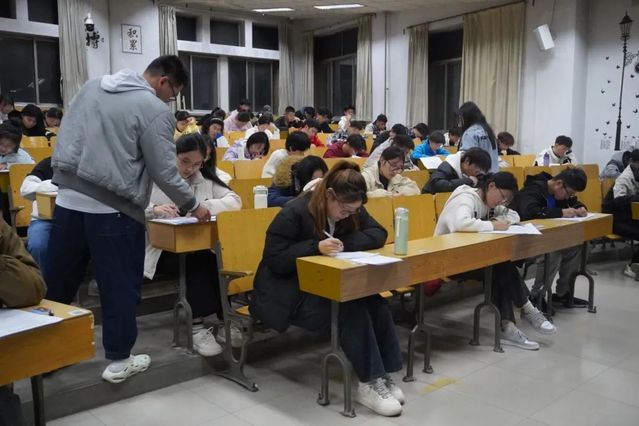 为衡量员工学习成果、提升学习动力并为期末考试做好准备,发现并解决学习中存在的问题,公司于11月25日晚在三号教学楼组织了2024级高等数学期中考试,共674名员工参加,设置8个考场。