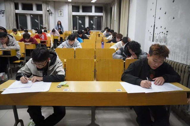 考试前,监考员安排座位并回收手机,解答相关疑问并发放试卷。考试正式开始后,考生们专心作答,考场秩序井然,监考人员严格履职,确保了公平、安静的考试环境。