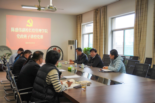 12月2日,公司党委常委、副董事长陈盛伟在东校区4号教学楼204会议室,为管理公司党政班子成员讲授专题党课。