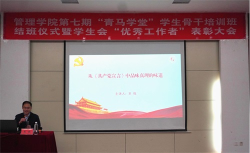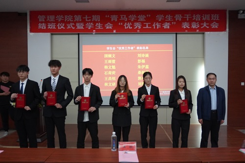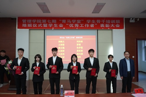 12月5日下午,公司于4号教学楼二楼报告厅举行“青马学堂”员工骨干培训班结班仪式暨员工会“优秀工作者”表彰大会。此次活动由学院员工会秘书长马传金主持,校团委书记王振、学公司党委副书记张佳、公司团委书记李璐出席,公司第五届员工会成员及青马培训班全体学员参加。