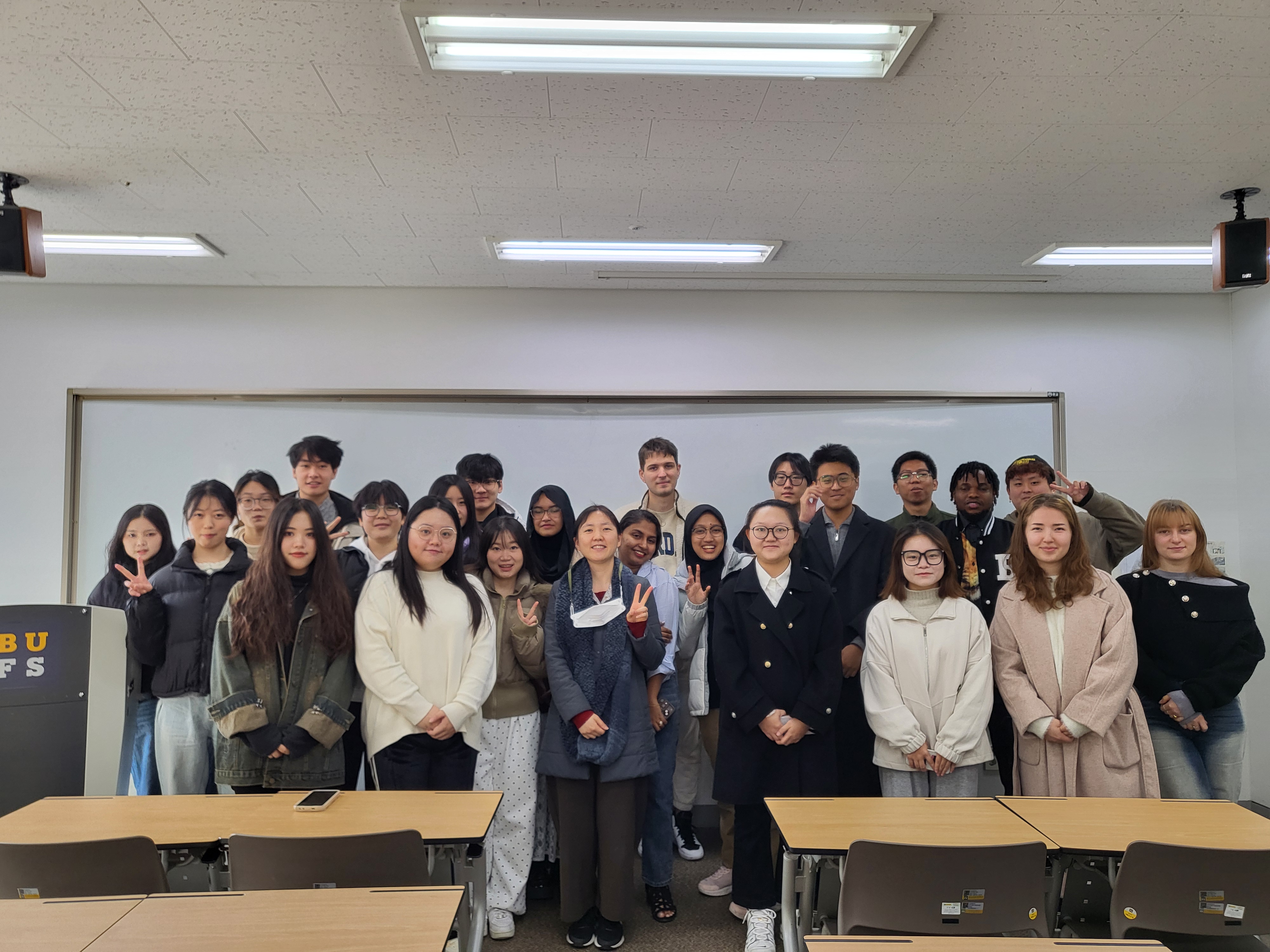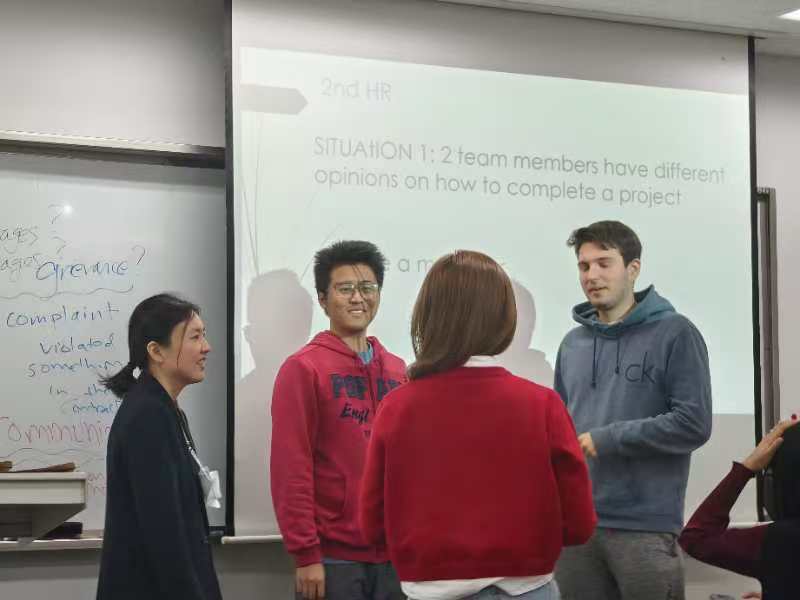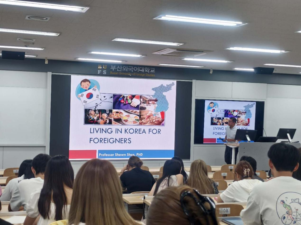 抵达韩国后,同学们迅速进入了学习状态,顺利开始课程学习。在釜山外国语大学的课堂体验让他们对学术的理解发生了深刻的变化。与国内的教学方式不同,韩国大学的课堂更加注重交流互动与批判性思维的培养。员工在课堂上积极发言、分享观点,并通过小组讨论与项目合作深入探讨学术问题。许多员工表示,这种开放性与参与感让他们对知识的探索更加主动,思维方式也变得更加灵活和独立。