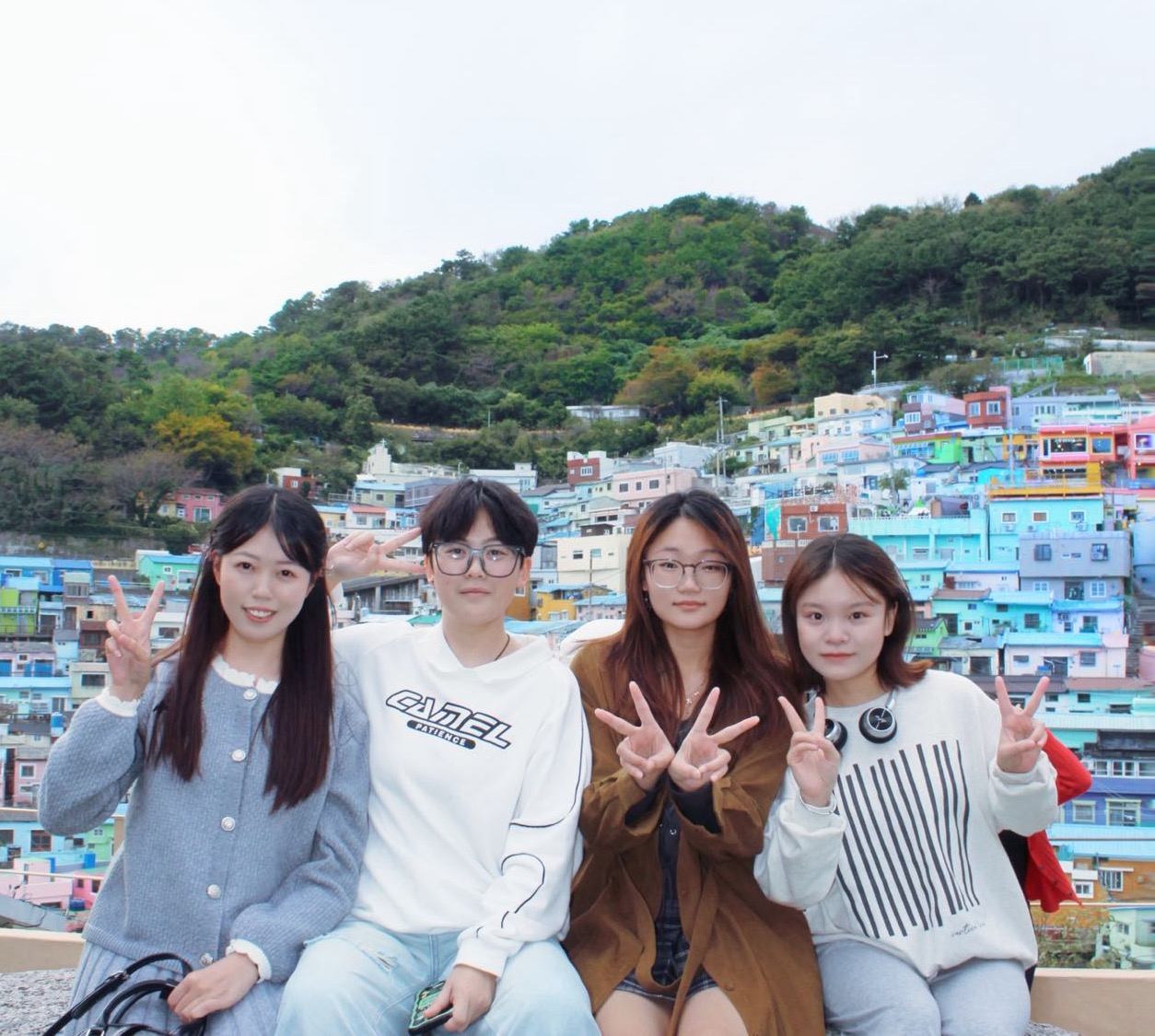 同学们在釜山甘川文化村合影