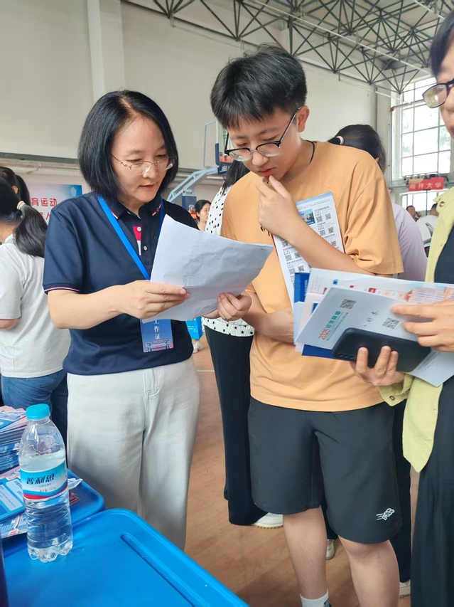 招生人员不辞辛劳,迎接每一位前来咨询的考生和家长。有些宣讲场所,条件较为艰苦,没有空调,酷热难耐。但老师们毫无怨言,一边拿着扇子扇风降温,一边耐心地为考生答疑解惑。他们用专业知识和热情,为考生们点亮了通往理想大学的道路,帮助他们在人生的重要抉择时刻做出明智的判断。在宣讲过程中,老师们详细介绍了公司的各个专业,从课程设置到团队力量,从实习实训到就业前景,一一为考生和家长剖析。