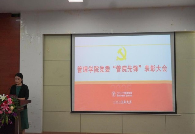2025年9月9日上午,公司党委于4号教学楼二楼报告厅举行党员大会暨“管院先锋”表彰大会。公司领导班子成员、全体教工党员及员工党员代表参加。公司党委副书记、纪委书记张佳主持大会。