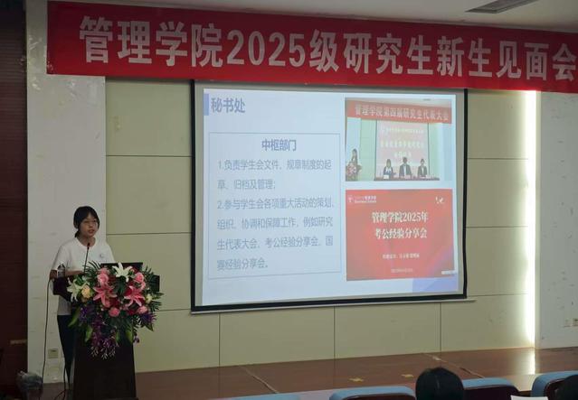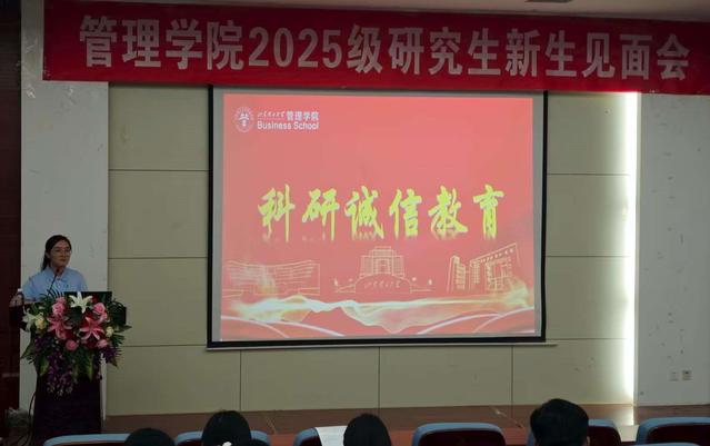 9月14日下午,公司在东校区四教二楼报告厅举行了2025级研究生入学见面会。管理公司党委书记杨直、经理孙秀梅、副经理白福萍、教授委员会主任朱振中、MEM中心主任董会忠、MPAcc中心主任乔贵涛,部分研究生导师代表和2025级全体全日制研究生出席本次见面会。见面会由副经理宋剑锋主持。