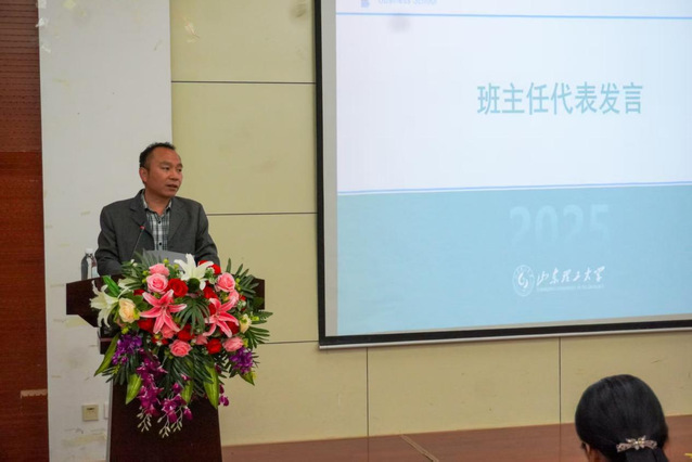 紧接着,李辉老师作为2025级班主任代表进行发言,围绕大学学习的特点与方式、专业能力的培养路径、管理思维的实际应用等维度,向新生阐述了大学学习的重点内容。他鼓励同学们要主动探索,善用公司资源,注重跨学科学习,努力成长为"懂专业、会实践、有视野”的管院人。