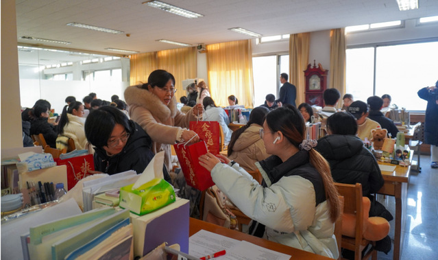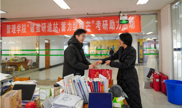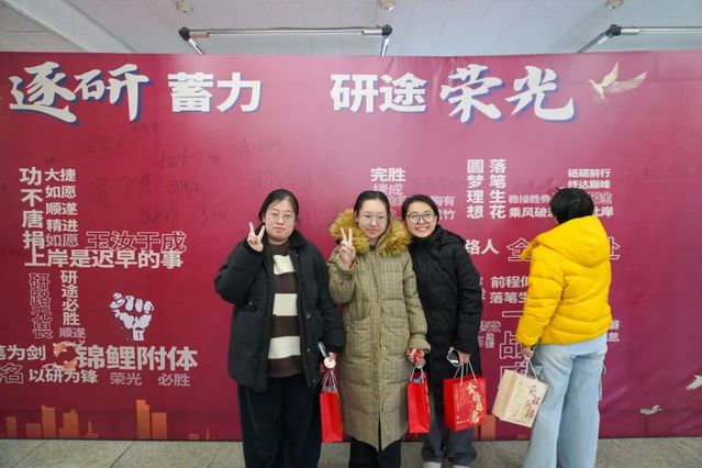 公司老师们化身“暖心派送员”,亲手将礼包递到每一位考研学子手中。老师们细心叮嘱备考注意事项,送上“一战成硕”的祝福,一句句“加油”的鼓励;一双双紧握的手;一份份并肩作战的底气,勾勒出寒冬中无比温情的画面。