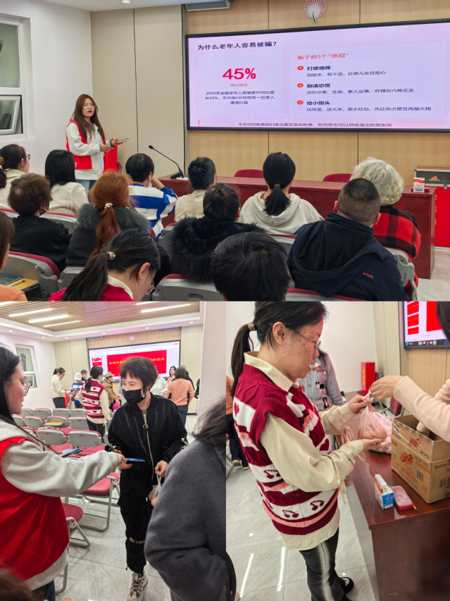 公司财会专业的志愿者凭借扎实的金融管理专业知识,聚焦社区老年群体开展反诈宣传活动,为老年群体筑牢安全屏障。对于社区独居老人,志愿者主动拓展服务范围,提供快递代收代送、上门问候等便民服务,切实解决独居老人生活中的实际困难。此外,志愿者还向老年人发放反诈宣传手册、爱心鸡蛋等贴心物资,并耐心解答疑问,全方位织就老年人反诈防护网。